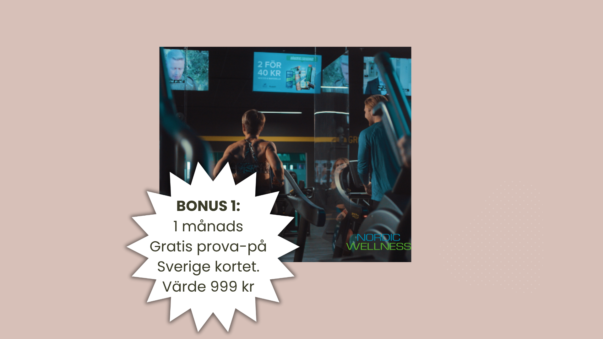 1 månads prova-på -gäller mot uppvisande av kvitto på köp av Hälsoresan. Provträningen gäller på valfria Nordic Wellness klubbar(Sverige kortet) 1 gång per person.